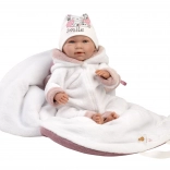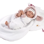 Neonato parlante con corpo morbido in tessuto che, premendo sul petto, inizia a dire “mamma”, “papà” ed emette un suono realistico di un neonato che piange. Braccia e gambe sono fissate al corpo con articolazioni. Il neonato è posizionabile e può anche stare seduto. Il ciuccio incluso nella confezione serve solo come accessorio. Dimensione 42 cm. Prodotto a mano in Spagna, confezionato in una scatola regalo. Età consigliata da 3 anni. Per il neonato è possibile acquistare separatamente altri abiti originali dell’offerta Llorens per i neonati NEW BORN nelle taglie 40-42 cm o 43-45 cm. La confezione include 3 batterie a bottone LR44 con istruzioni per la loro sostituzione. Le batterie sono beni di consumo e pertanto il loro esaurimento non è motivo di reclamo per la bambola.