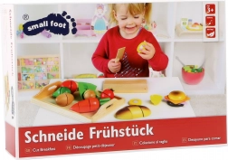 Questo set da colazione in legno da tagliare offre ai bambini un'esperienza autentica di preparazione del cibo. I pezzi colorati degli alimenti, grazie al velcro, si tagliano facilmente e si riuniscono di nuovo, così i bambini imparano a coordinare i movimenti e acquisiscono le basi dell'uso del coltello in modo sicuro. La robusta realizzazione in legno con bordi lisci è ideale per le piccole mani dei bambini.