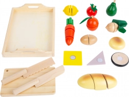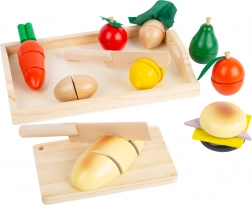 Include un vassoio, un tagliere, un coltello e una selezione di prodotti da forno e verdure. I bambini possono preparare, affettare e servire la propria colazione – tutto in un unico posto.