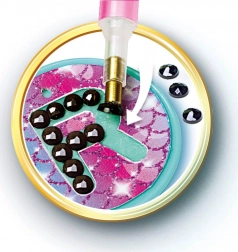Tutto è studiato per una creazione semplice: cordini elastici per un infilaggio comodo, penna in cera per applicare con precisione gli strass e robusti anellini metallici per collegare i ciondoli. Perfetto per sviluppare motricità fine, creatività e senso del colore.