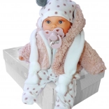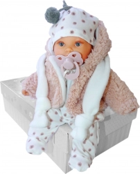 Scoprite il fascino di una bambola spagnola fatta a mano, le cui funzioni entusiasmano ogni bambino. Questa bambola reagisce al ciuccio magnetico ed emette suoni realistici di un bebè che piange, che possono essere calmati. Sa anche dire "mamma" e "papà".