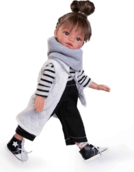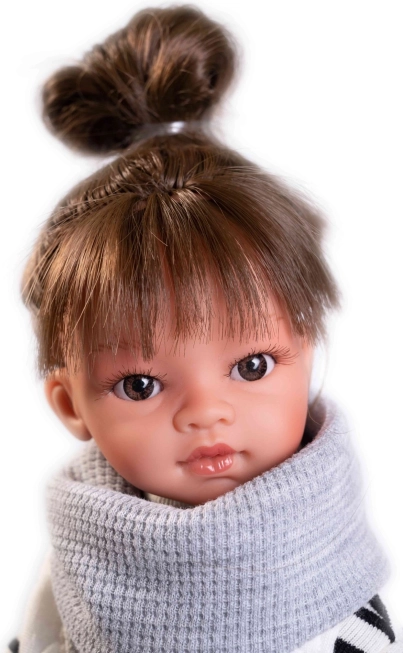 La bambola Emily del marchio Antonio Juan è realizzata in vinile completamente, che le conferisce un aspetto realistico e proprietà tattili. Ha capelli su tutta la testa ed è vestita con abbigliamento dettagliato, una parte del quale è in cotone organico coltivato senza trattamenti chimici.