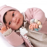 La bambola Pipa riproduce fedelmente un vero neonato: presenta tratti del viso dettagliati, mani e piedi in speciale vinile ammorbidito piacevole al tatto e un morbido corpo in tessuto per comode coccole. Gli attacchi articolati degli arti consentono un posizionamento naturale, inclusa la seduta autonoma senza supporto.