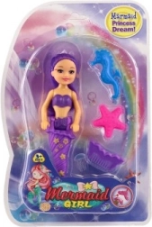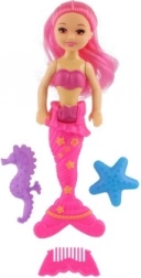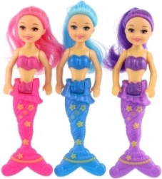 La bambola è disponibile in 3 varianti di colore (rosa, blu, viola) con coda finemente decorata e capelli appariscenti. Grazie alla dimensione di 15 cm entra facilmente nello zainetto ed è ideale per i viaggi, per il bagnetto e per la cameretta.