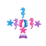 La confezione include 3 accessori (pettinino, stella marina, cavalluccio marino) che ampliano le possibilità di gioco e sviluppano la motricità fine.