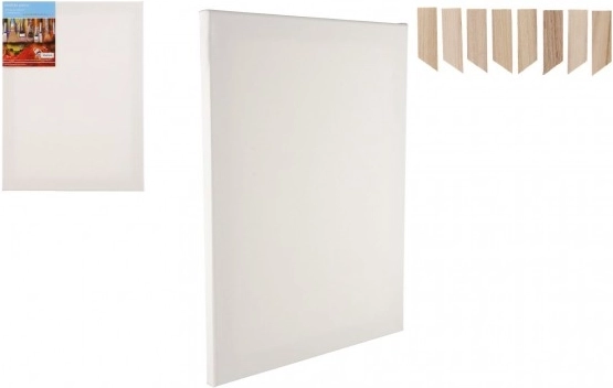 Il telaio è realizzato in legno di pino di alta qualità, garantendo stabilità e durata. Il pacchetto include anche un set di 8 cunei di legno che permettono di regolare ulteriormente la tensione della tela.