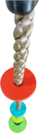 La corda include gradini di plastica colorati che aiutano i bambini a fissare la loro posizione rendendo l'arrampicata più sicura e divertente.