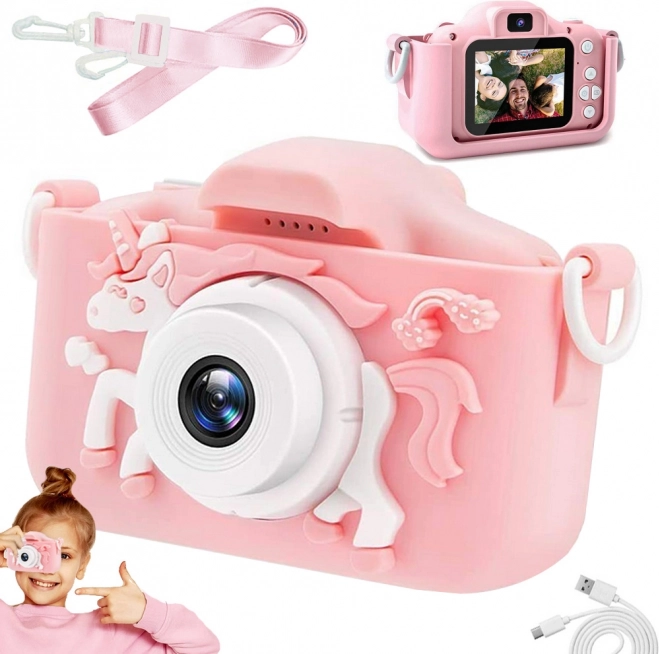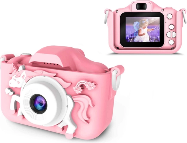 La fotocamera è realizzata con materiali di alta qualità, garantendo la sua durata. La custodia in silicone con un design giocoso protegge il dispositivo dalle cadute. Grazie al design leggero, è adatta per le piccole mani e può essere comodamente portata al collo con un laccetto.