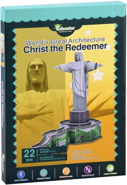 Scopri il piacere della creazione con un puzzle 3D che riproduce fedelmente la celebre Statua del Cristo Redentore sopra la città brasiliana di Rio de Janeiro. Grazie ai pezzi tagliati con precisione in schiuma da 3 mm rivestita con carta stampata laminata, otterrai un modello solido ed esteticamente curato, perfetto in qualsiasi ambiente.