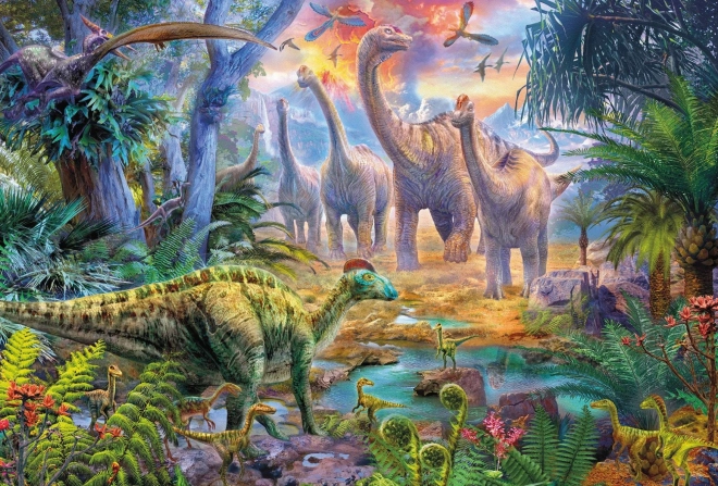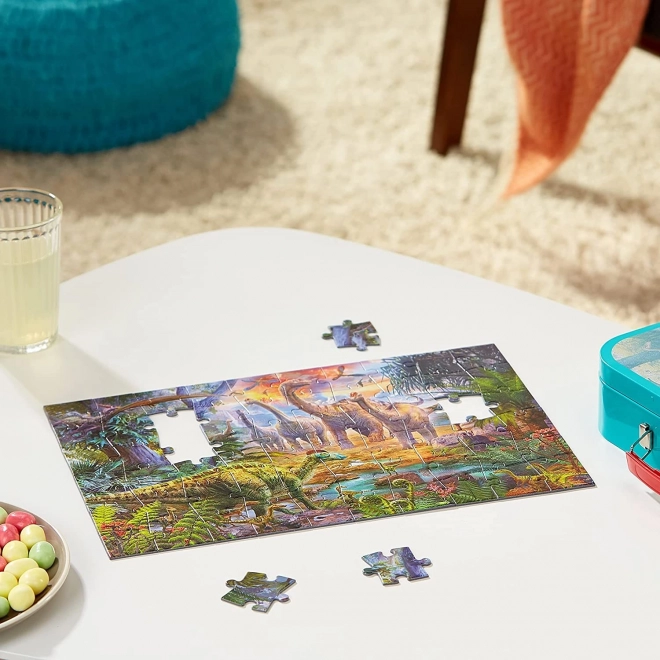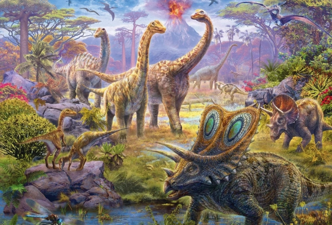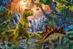 Ogni puzzle offre una scena diversa dal mondo preistorico, diverse specie di dinosauri sono raffigurate in illustrazioni dettagliate.